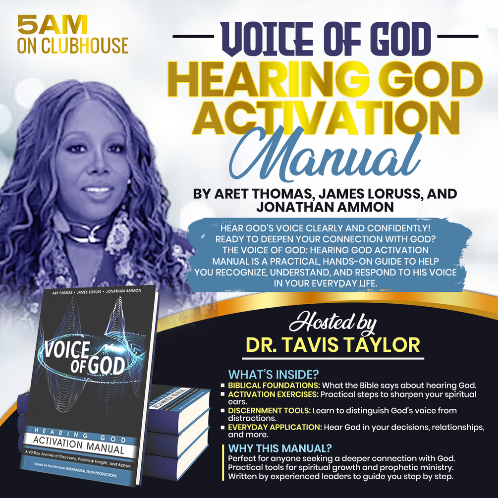 Kickstart your journey with Dr. Tavis Taylor and a vibrant community of believers. Join our Voice of God Activation Sessions on Clubhouse, where we’ll dive deeper into the manual and share practical insights to help you hear God’s voice like never before.
